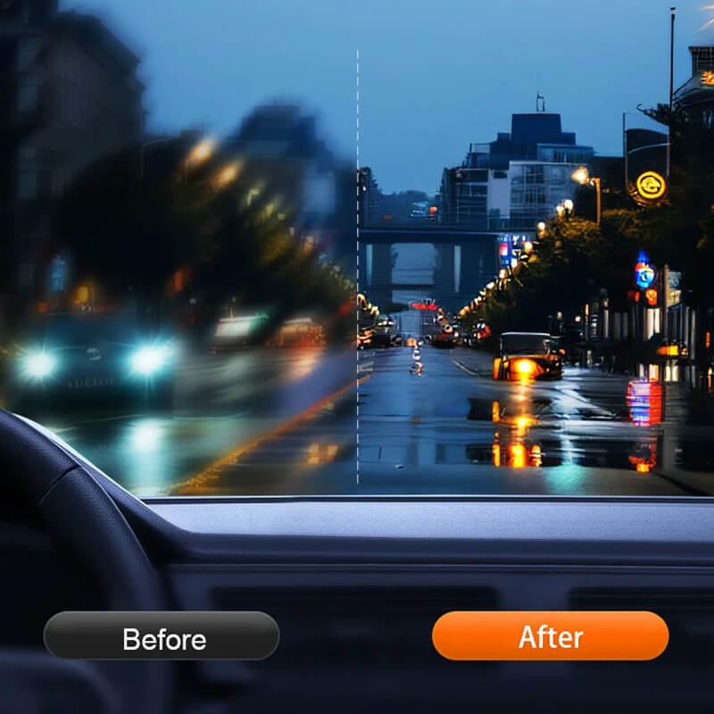 Het effect is duidelijker dan de auto-ruitenwisser of handdoek. Het kan je achteruitkijkspiegel en voorruit zo glad en helder maken als nieuw.