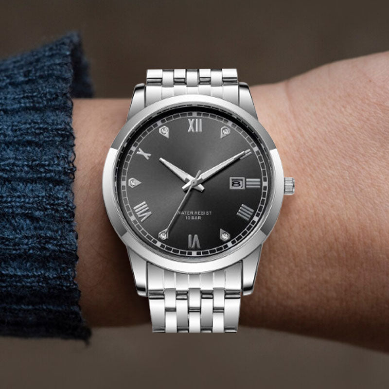 Geavanceerd en stijlvol ontwerp - Deze polshorloge voor zakenmensen combineert een tijdloos ontwerp met een moderne roestvrijstalen armband, waardoor het het perfecte accessoire is voor zowel professionele als formele gelegenheden.
