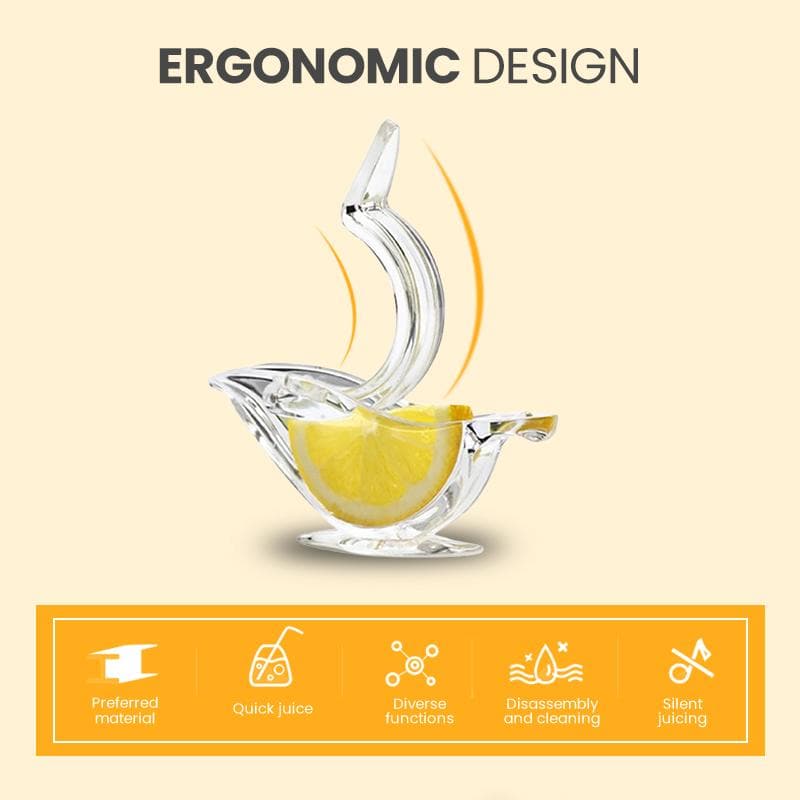Elegant vogelachtig ontwerp, stop er een schijfje citroen in en met een simpele druk kun je in een handomdraai limonade drinken. Een geraffineerde gadget voor de keuken.