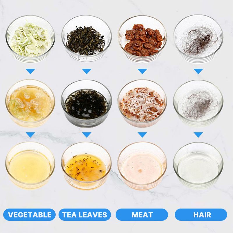Krachtige Functie: Het kan pijpverstoppingen zoals haar, papier, zeepresten, groenten, fruit, voedselresten, vet, vlees en organisch materiaal snel oplossen.