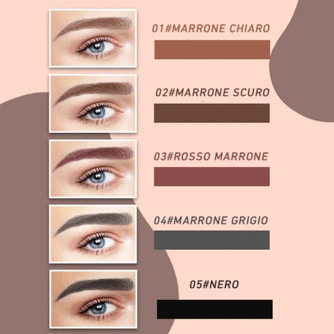 Dit wenkbrauwpotlood is verkrijgbaar in 5 populaire kleuren: lichtbruin, donkerbruin, roodbruin, grijsbruin en zwart. Kies een kleur die past bij je haarkleur of wenkbrauwen en maak je oogmake-up completer, verfijnder en charmanter.
