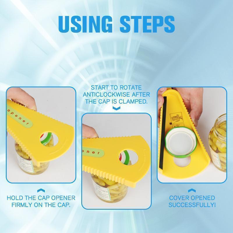 Creatieve multifunctionele flessenopener is ontworpen voor mensen die moeite hebben met het openen van flessen en potten met schroefdoppen. De opening maakt zelfs de kleinste flessen zoals miniatuur likeurflessen mogelijk, maar ook grotere strakke augurkenpotten en andere potten voor levensmiddelen. Het maakt het openen gemakkelijk.