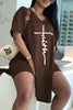 49% KortingšT-shirt en short met letterprint en V-hals met split opzij, 2-delige set