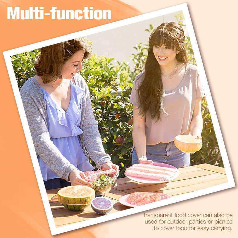 [Netjes verpakt] De rand van elke zorgvuldig vervaardigde transparante voedselhoes is voorzien van een passend gebogen elastiek dat zonder al te veel spanning om het bord kan worden gewikkeld.