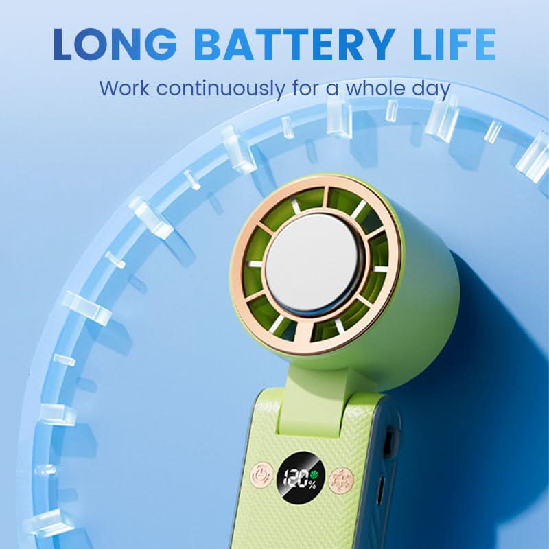 LANGDURIGE KOELKRACHT – Uitgerust met een lithiumbatterij met hoge capaciteit, ondersteunt deze ventilator urenlang continu gebruik. Het energiebesparende systeem zorgt voor optimale koelprestaties zonder dat u hem vaak hoeft op te laden. Dankzij de Type-C snellaadondersteuning kunt u genieten van snelle opstarttijden en hoeft u zich geen zorgen meer te maken over een lege batterij.