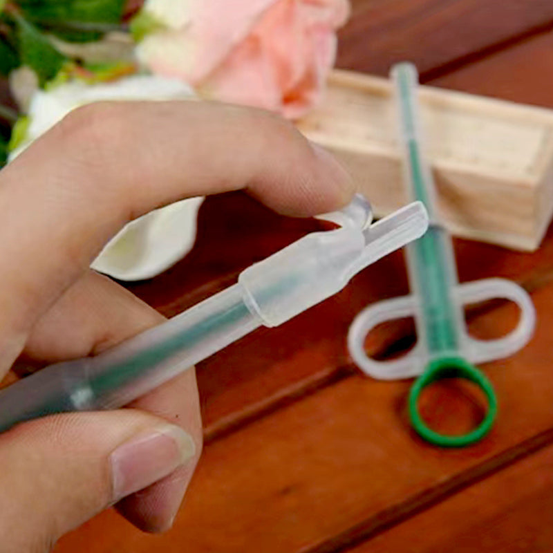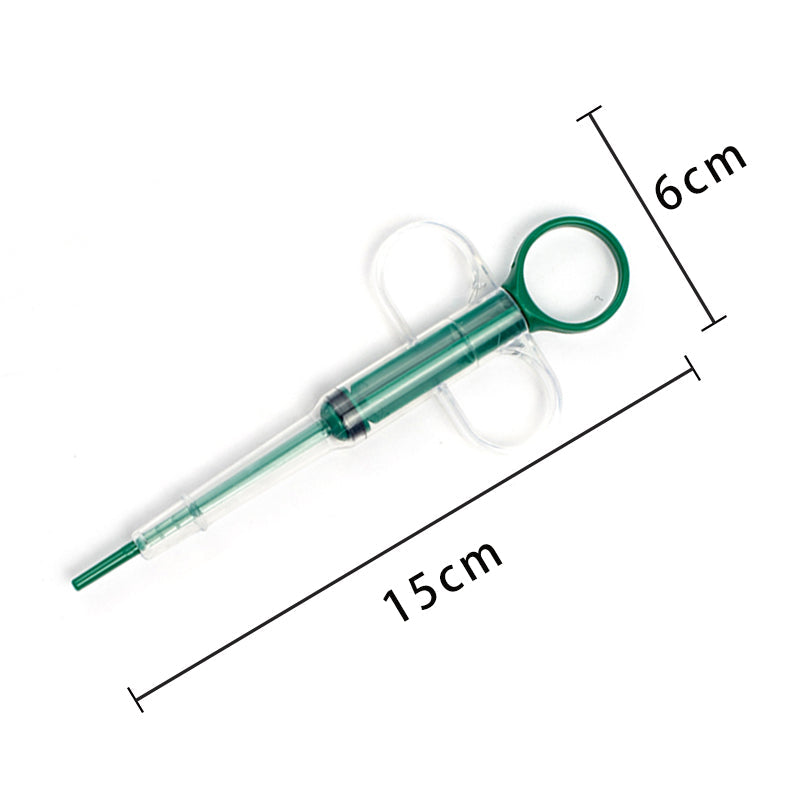 【Geneesmiddelen, vloeibare medicijnen】: Vul de medicijn dispenser met medicatie of vloeibare medicijnen, open de mond van het huisdier en fixeer deze, richt op de keel en duw de zuiger krachtig in.