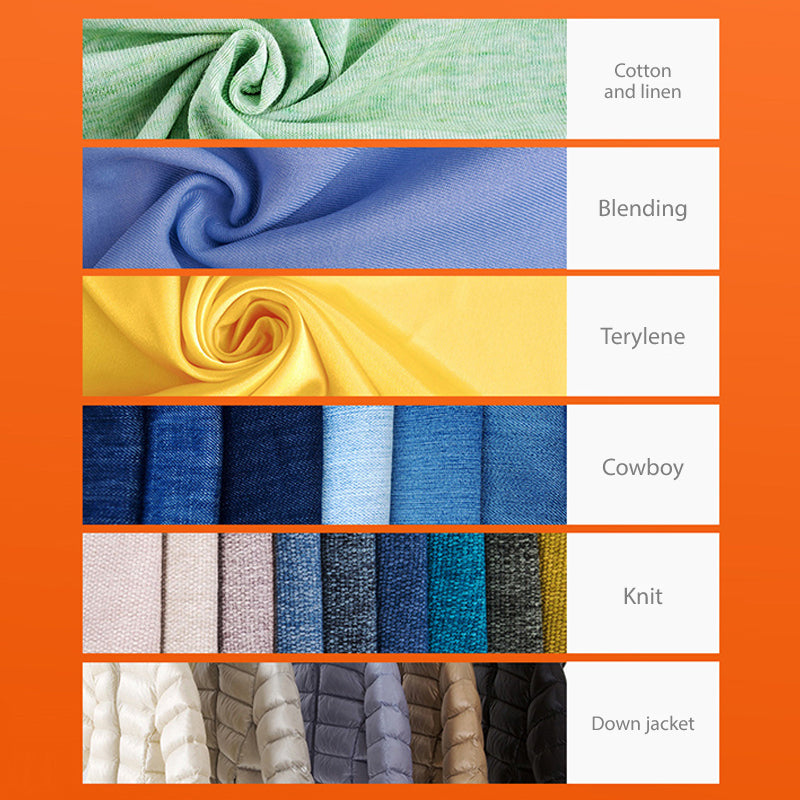 GESCHIKT VOOR VERSCHILLENDE STOFFEN: Het werkt effectief op een breed scala aan stoffen, waaronder katoen, linnen, mengsels, polyester, denim en dons, waardoor veelzijdigheid en betrouwbaarheid worden gegarandeerd voor al uw kledingstukken.
