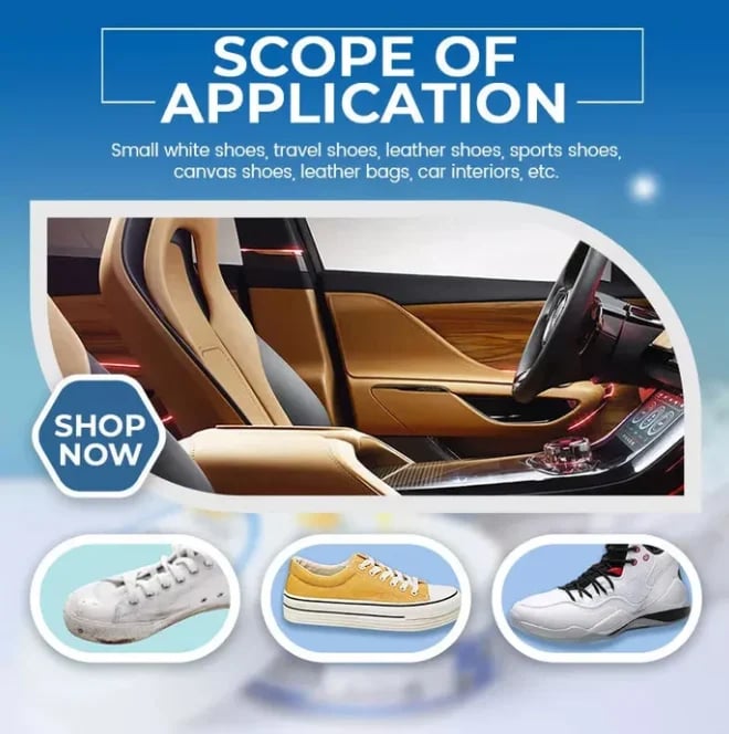 🌟 Toepassingsgebied: Van kleine witte schoenen tot leren tassen - onze veelzijdige reinigingscrème werkt wonderen op verschillende oppervlakken, waaronder reisschoenen, leren schoenen, sportschoenen, canvas schoenen en zelfs auto-interieurs!
