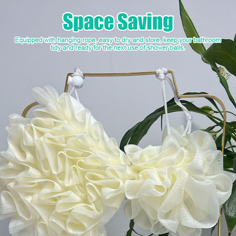 🔗 Ruimtebesparend en hygiënisch:Uitgerust met een ophangkoord is hij gemakkelijk te drogen en op te bergen, zodat je badkamer vrij blijft van rommel en je badbloem klaar is voor een volgend gebruik.