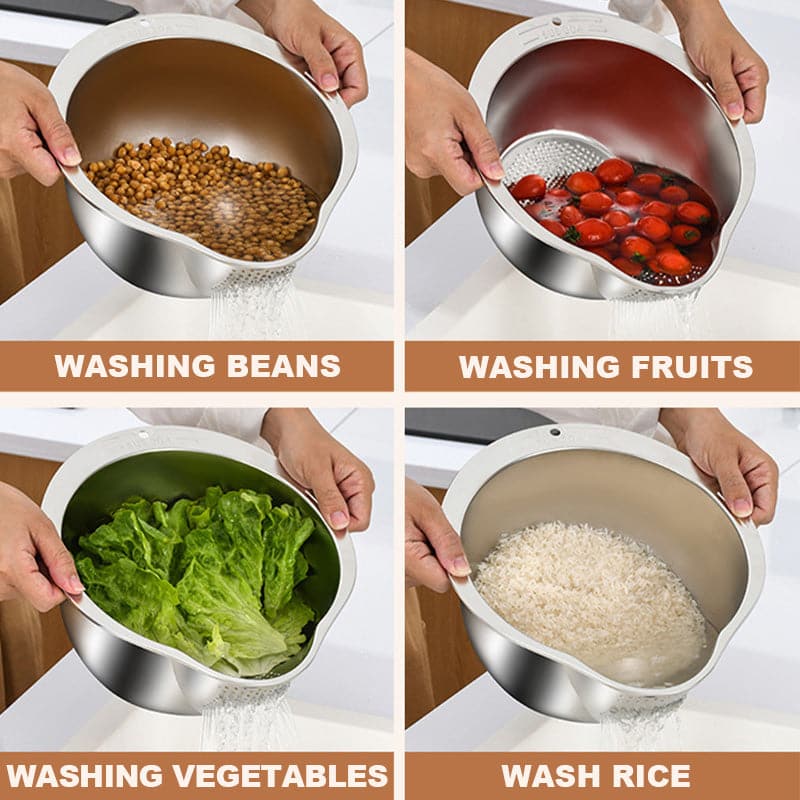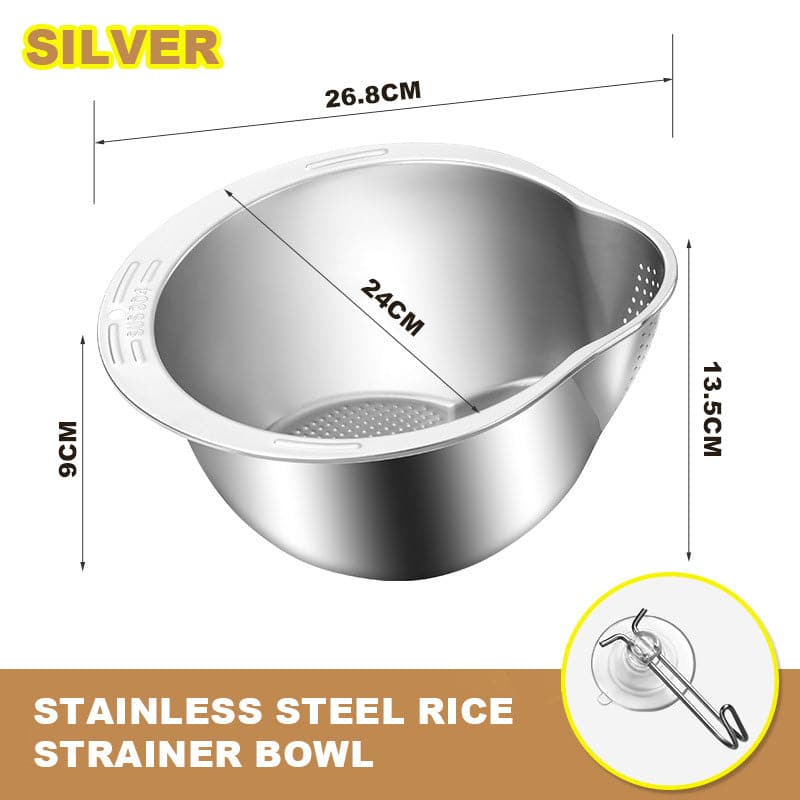 Maak kennis met onze Stainless Steel Rice Strainer Bowl, de perfecte keukenhulp voor probleemloze rijstbereiding. Deze duurzame en veelzijdige zeefkom is ontworpen om het wassen en uitlekken van rijst te vereenvoudigen, zodat je korrels perfect schoon zijn en klaar om te koken. Zeg vaarwel tegen de rommel van het rijst wassen met dit essentiële hulpmiddel dat je tijd en moeite bespaart in de keuken