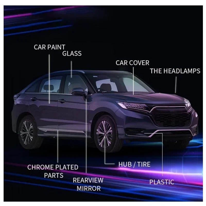 Geen schade aan het oppervlak van de auto. Verwijder veilig lichte krassen, zonnevlekken, texturen en vlekken om het oppervlak van uw auto te vernieuwen, autokrassen te verwijderen, volledige kleurcompatibiliteit te hebben en de glans van de autolak te herstellen.